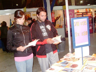 El día jueves 8 de Octubre la escuela nos invitó a la feria del libro y de Arte que se realizó en el Gimnasio Municipal Roberto De Vicenzo.Cuando llegamos se realizaron charlas para todos (incluyendo los docentes presentes) sobre varios temas. Encontramos muchos payasos y títeres que hacían reir a los chicos. Recorriendo los diversos stands (o estáns como quieras) recibíamos explicaciones como por ejemplo como se manejan los policías hoy. Había promotoras para mostrarle la escuela de cocina para estudiar repostería y chef. Además de libros e historietas había un señor que dibujaba caricaturas de personas y significados de los nombres. Podías no solo leer sino comprar libros y artesanías. Un mate gigante y un muñeco estaban en el medio del camino.Se montaron carpas en donde se daban charlas y estaban docentes. Por supuesto puestos de comida y artistas plásticos también.